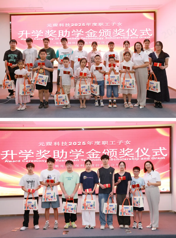 2025年8月6日,元琛科技职工子女升学奖助学金颁奖典礼圆满举行,此次活动延续公司“人才强企、教育兴邦”的发展理念,对步入高等学府的职工子女、在中小学阶段荣获市、区级荣誉的优秀职工子女,以及公司结对帮扶的学生进行了表彰。