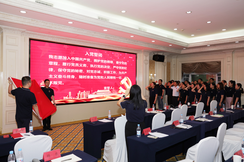 元琛科技党支部于6月29日组织了一次主题为“重温入党誓词 汲取奋进力量”的庆七一建党节党日活动。董事长徐辉、总经理兼党支部书记梁燕,以及全体党员、中高层干部和退役军人,共计50余人参加了此次活动。