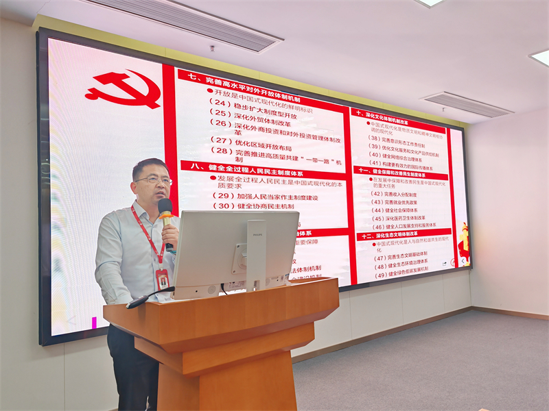 为深入贯彻学习党的二十届三中全会精神,深刻领会并把握全会的精神与内涵,近日,元琛科技党支部组织开展专题党课活动,党支部副书记陈志围绕二十届三中全会的核心精神,结合企业实际发展情况,为公司全体党员上了一场深刻的专题党课。元琛科技党支部书记梁燕出席了此次活动。